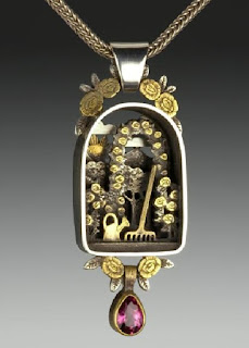 Хочу поделиться новым "эстетическим шоком", в хорошем смысле этого слова, которые вызвали у меня работы Suzanne Williams. Это очень красиво!!! Сама мастер пишет, что увлечение к украшениям у нее появилось еще в 2-х летнем возрасте, когда она закрыла свою маму в доме, чтобы получить доступ к ее шкатулке с украшениями:)) Для нее ювелирные украшения могут передавать определенную философию, идею, эмоцию. Suzanne создает объемные украшения из серебра, золота, бронзы. Каждая часть композиции изготовляется из фрезерованных изделий из металла, листа, проволоки и трубы из серебра, золота и бронзы. Все отдельные детали композиции вырезаются или выпиливаются из металла, а затем с помощью пайки элементы дизайна собираются в единую композицию. на завершающем этапе создания украшения происходит установка камней или стекла, полировка, окисление. В общем, описать словами эту красоту очень сложно, лучше смотреть, затаив дыхание! Незнаю, как у Вас, но первое впечатление у меня от работ можно выразить одним словом "Вау"!!!!!