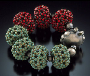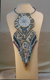 Когда смотришь на работы Valerie Hector (США) с использованием бисера и металла, то понимаешь, что бисер - это не только фенечки и кулоны. Я не особо увлекаюсь работами из бисера, хотя мечтаю научиться плести жгуты, но работы данного мастера поразили. По словам Valerie все началось с детских бус, состоящих из деревянных бусин и бисера. Увлечение бусинами и бисером не проходило и 1988 год можно считать началом профессиональной работы с бисером и металлом. Всем тонкостям работы мастер выучилась сама. За прошедшее с 1988 года время многое изменилось - маркетинг, местоположение мастерской, техника, но осталось главное -"дизайн произведения, которые сочетают упрощенные формы с пышными поверхностями, балансировка напряженности между простотой и сложностью. Удобство ношения и долговечность также важны.С самого начала я обьединяю бисер и металл. Мне нравится чувствовать напряжение от совмещения этих полярных материалов. Напряжение, которое при обдуманном подходе может создать особую гармонию." работы мастера оринетированы на китайское бисероплетение, как на одно из древнейших.